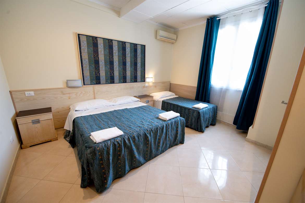 Camera Tripla STRUTTURA INTERNA con tre comodi letti, un matrimoniale e un singolo.